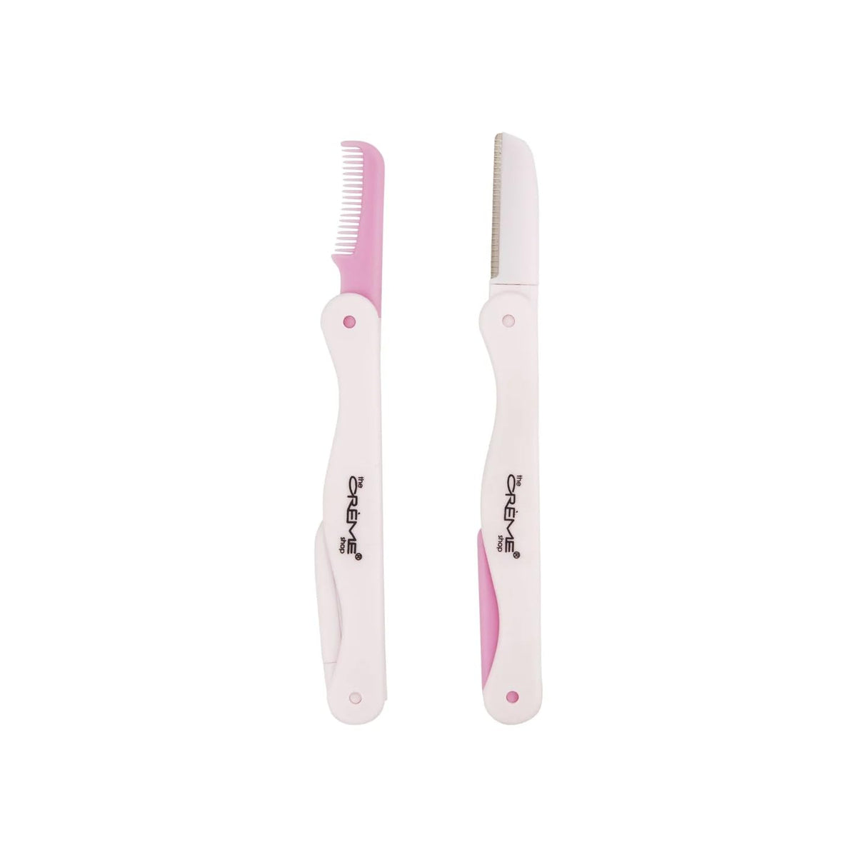 The Crème Shop Comb & Shape Grooming Folding Razor Duo, Dermaplaning Tool for Face, Face Razors for Women, Stocking Stuffers for Women (Pack of 2)