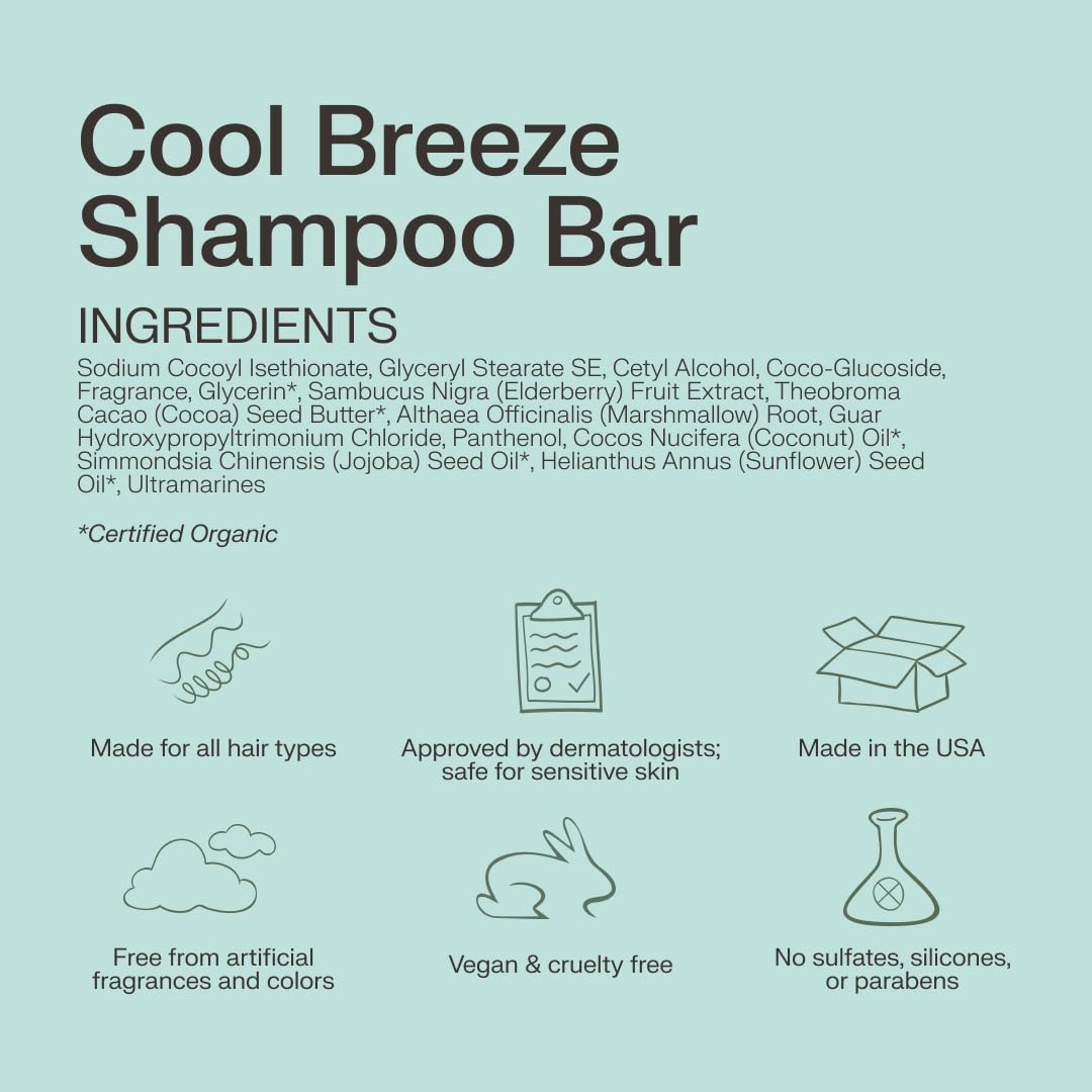 The Earthling Co. Shampoo Bar - Promote Hair Growth, Strengthen & Volumize All Hair Types - Paraben & Sulfate Free formula with Natural, Vegan Ingredients for Dry Hair (Cool Breeze, 3 oz)