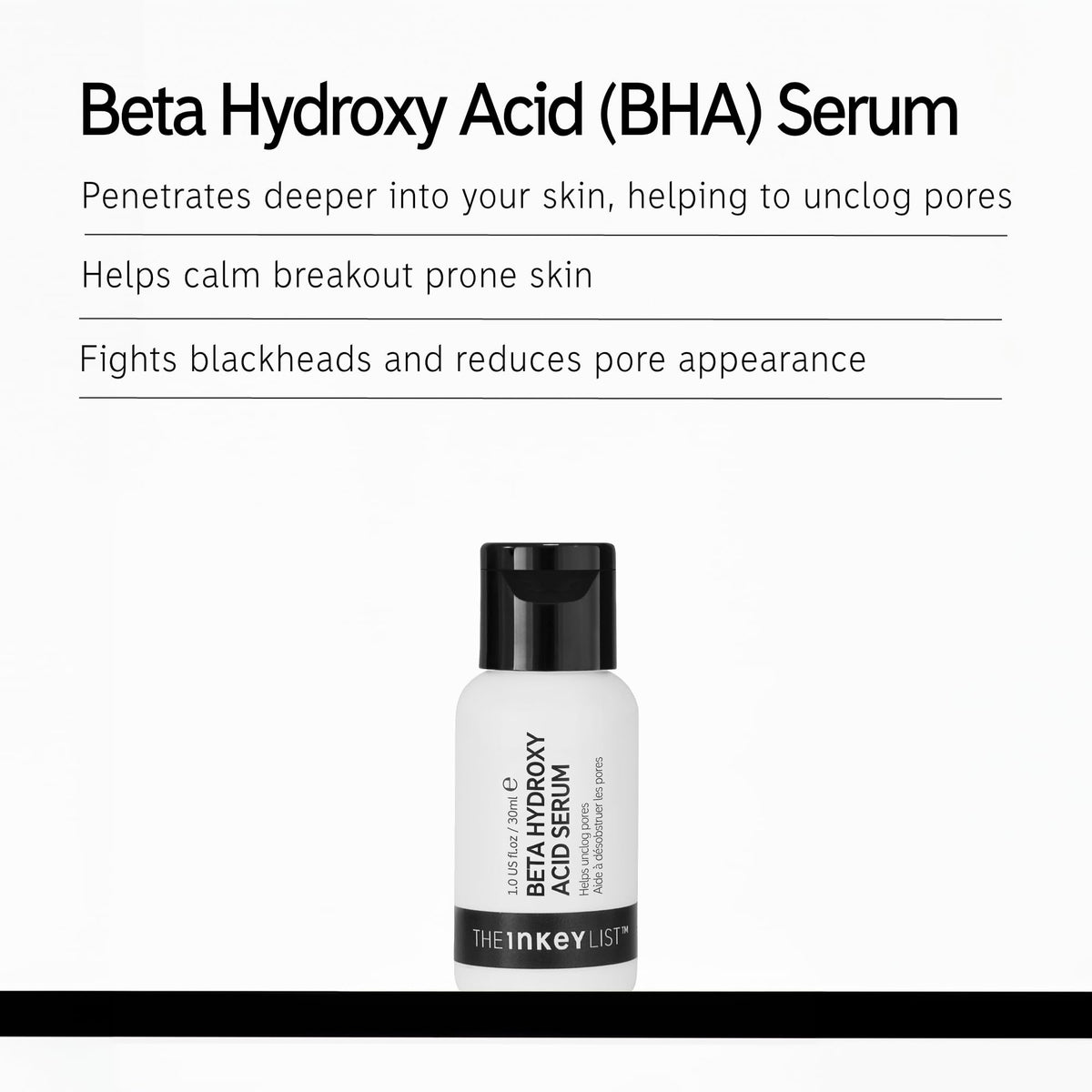 The INKEY List Beta Hydroxy Acid (BHA) Serum is a 1.01 fl oz face exfoliant suitable for normal, oily, or dry skin types, targeting pores and blackheads to reveal smoother and clearer skin.