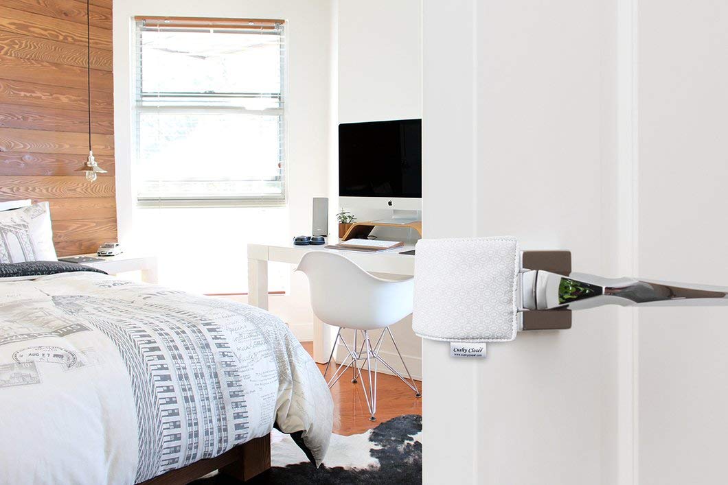 The Original Cushy Closer Door Cushion- White- | No More Noisy Doors! | Door Latch Cover- Baby Safety for Quiet Doors- Childproofing