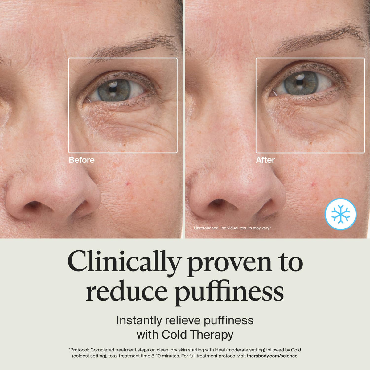 Experience the ultimate skincare treatment with TheraFace Depuffing Wand. This cold and heat skincare tool helps depuff and rejuvenate your skin, providing a relaxing and effective solution for dark circles and radiant skin.