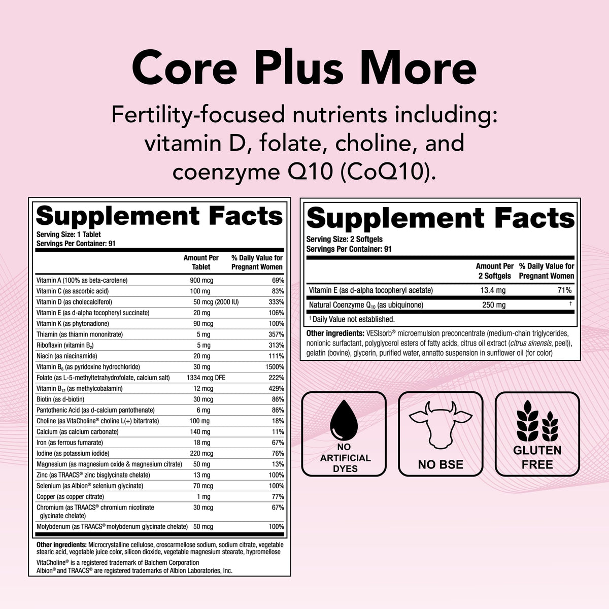 | product benefit | Theralogix TheraNatal OvaVite Preconception Vitamins 13Week Supply Prenatal Vitamins Fertility Supplement for Women with CoQ10 NSF Certified 91 Tabs, 182 Softgels 91 Servings |