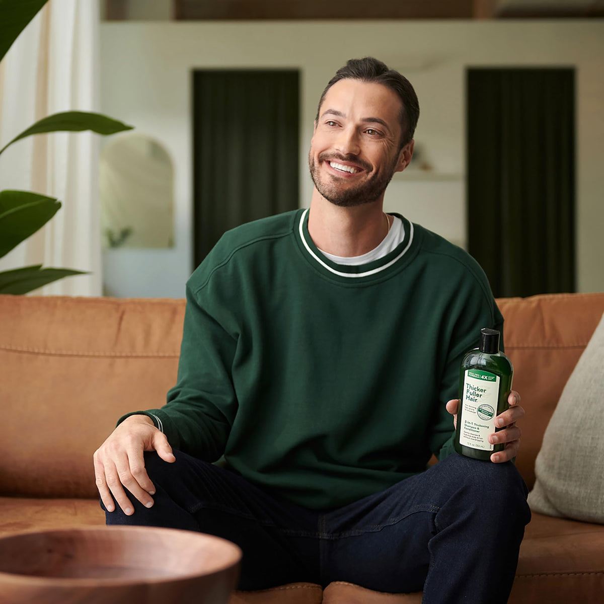 Thicker Fuller Hair 2-in-1 Thickening Shampoo and Conditioner for Men is a hydrating formula with aloe leaf juice that targets thinning hair, providing volume, thickness, and hydration for a fuller appearance.