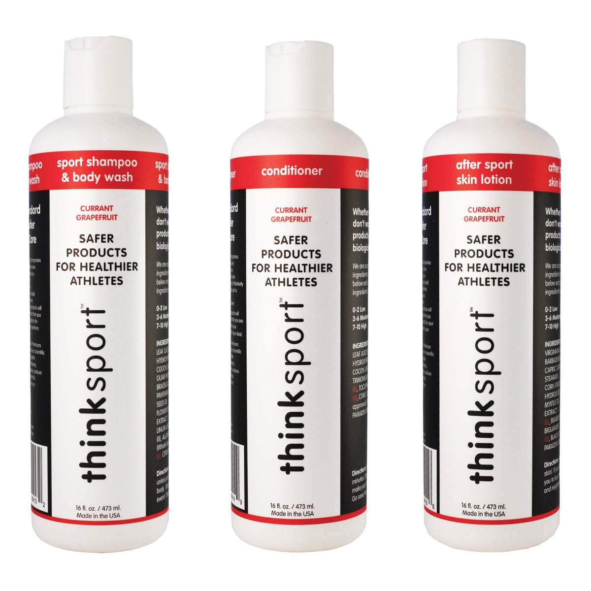 After you have properly used thinksport Shampoo Body Wash, apply to wet head and leave in for 13 minutes. Rinse thoroughly. Go play.