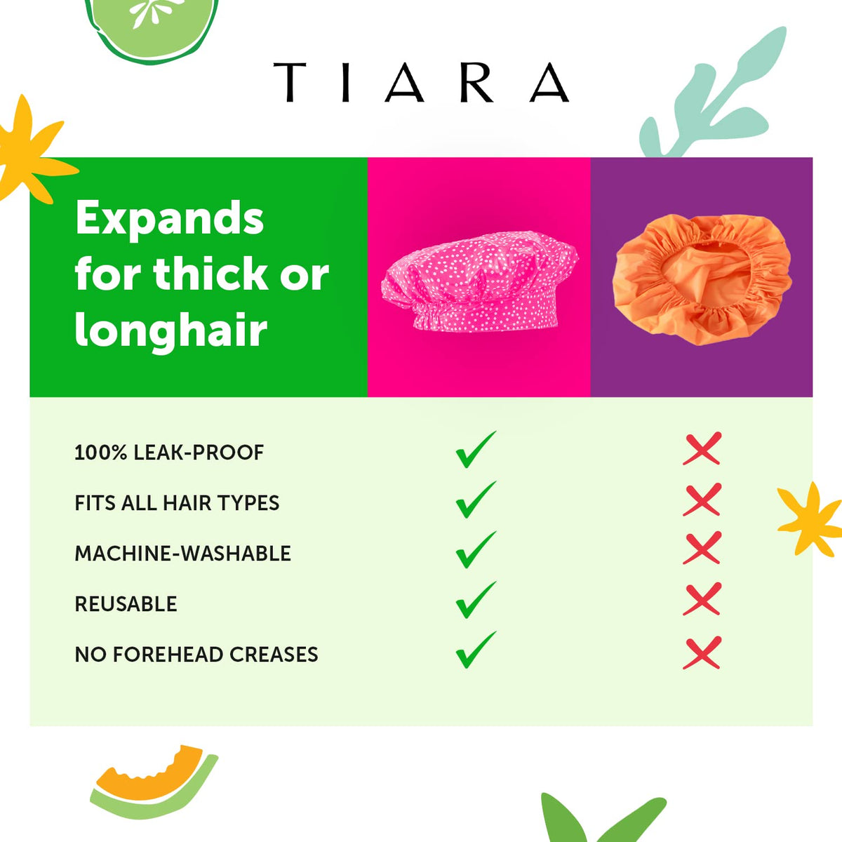 Indulge in luxury hair protection with TIARA Luxury Shower Cap for Women. This reusable waterproof cap is designed for all hair lengths and types, offering a comfortable and leakproof solution for showering or spa treatments.