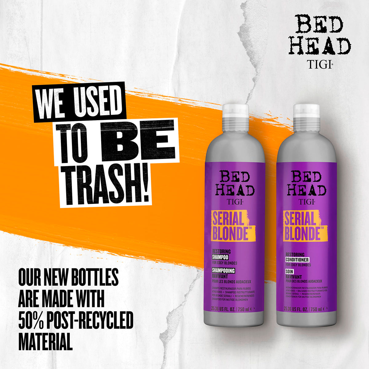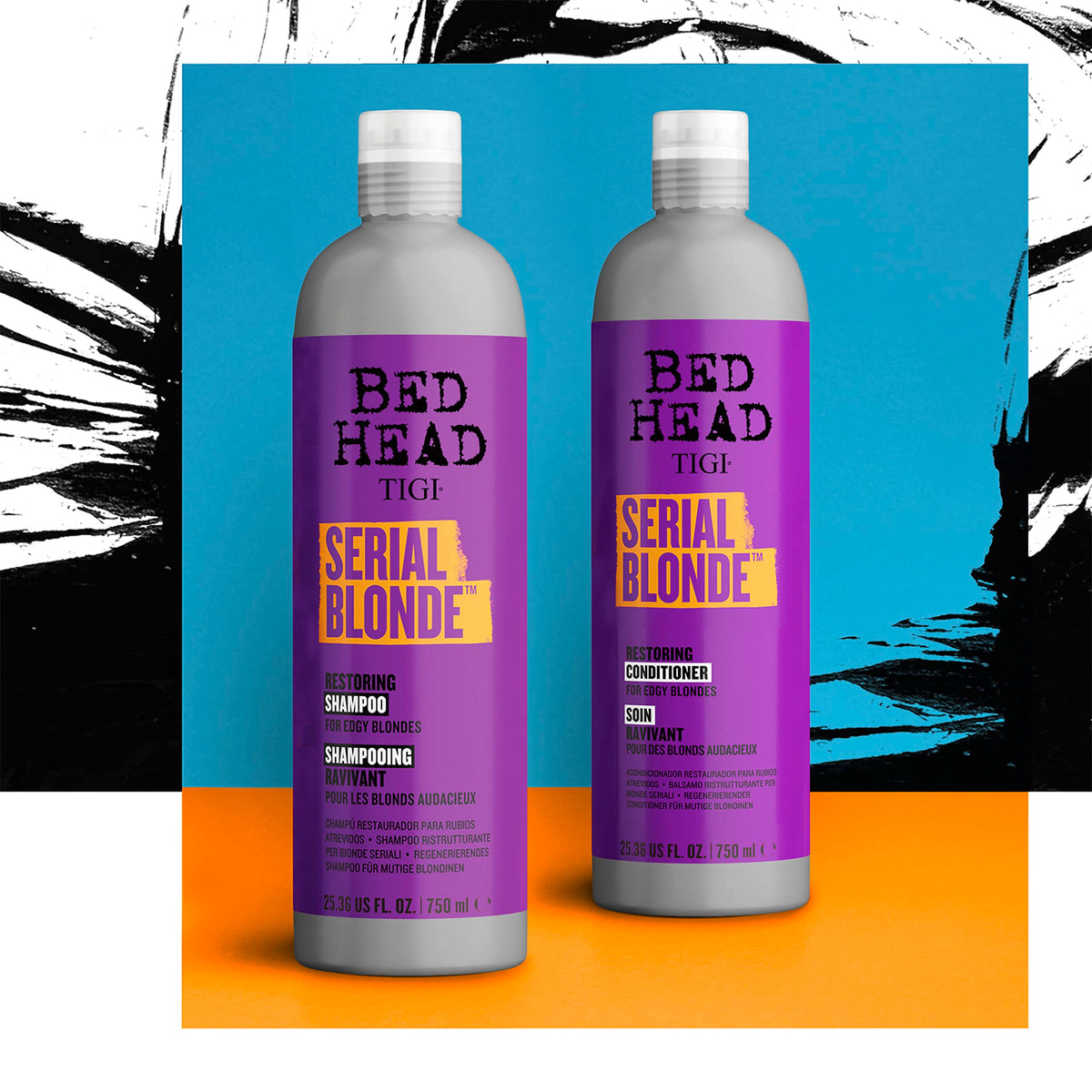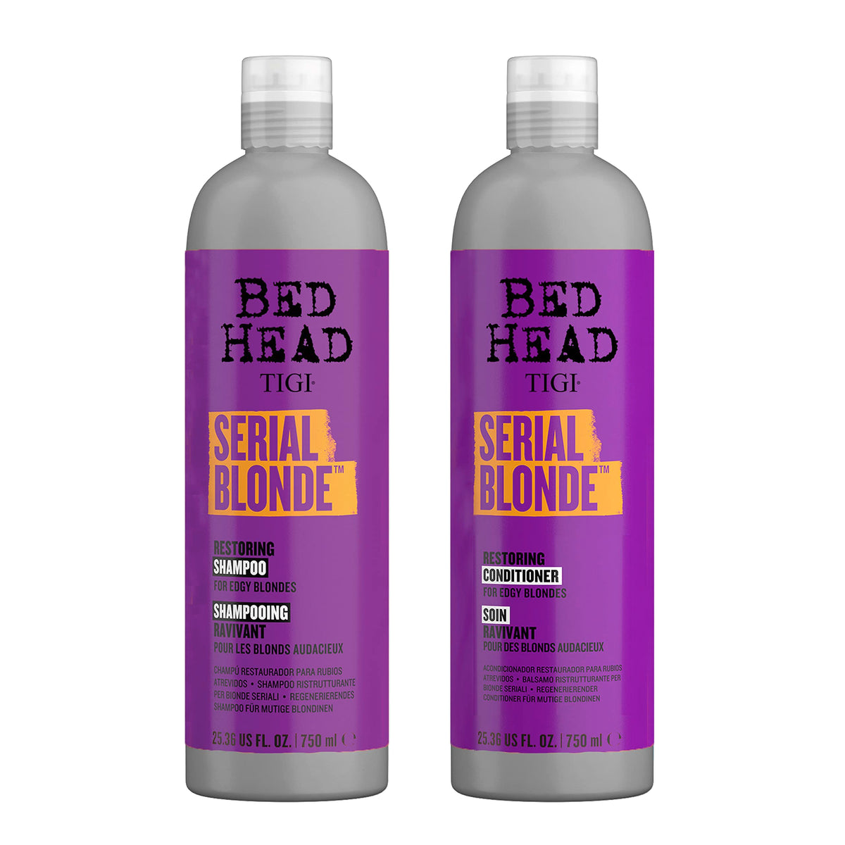 TIGI Bed Head Shampoo & Conditioner For Damaged Blonde Hair Serial Blonde is a powerful duo enriched with Hydrolyzed Keratin. This set of 2 x 25.36 fl oz bottles helps in repairing and nourishing damaged blonde hair.