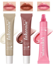 Tinted Lip Butter Balm-3 Colors Vanilla Beige Brown Pink Sugar Lip Gloss,Clear Jelly Yummy Tint Lip Stain,Long Lasting Hydrating Glow Reviver Lip Care Oil,Women's Day Makeup Gift for Women-Set A