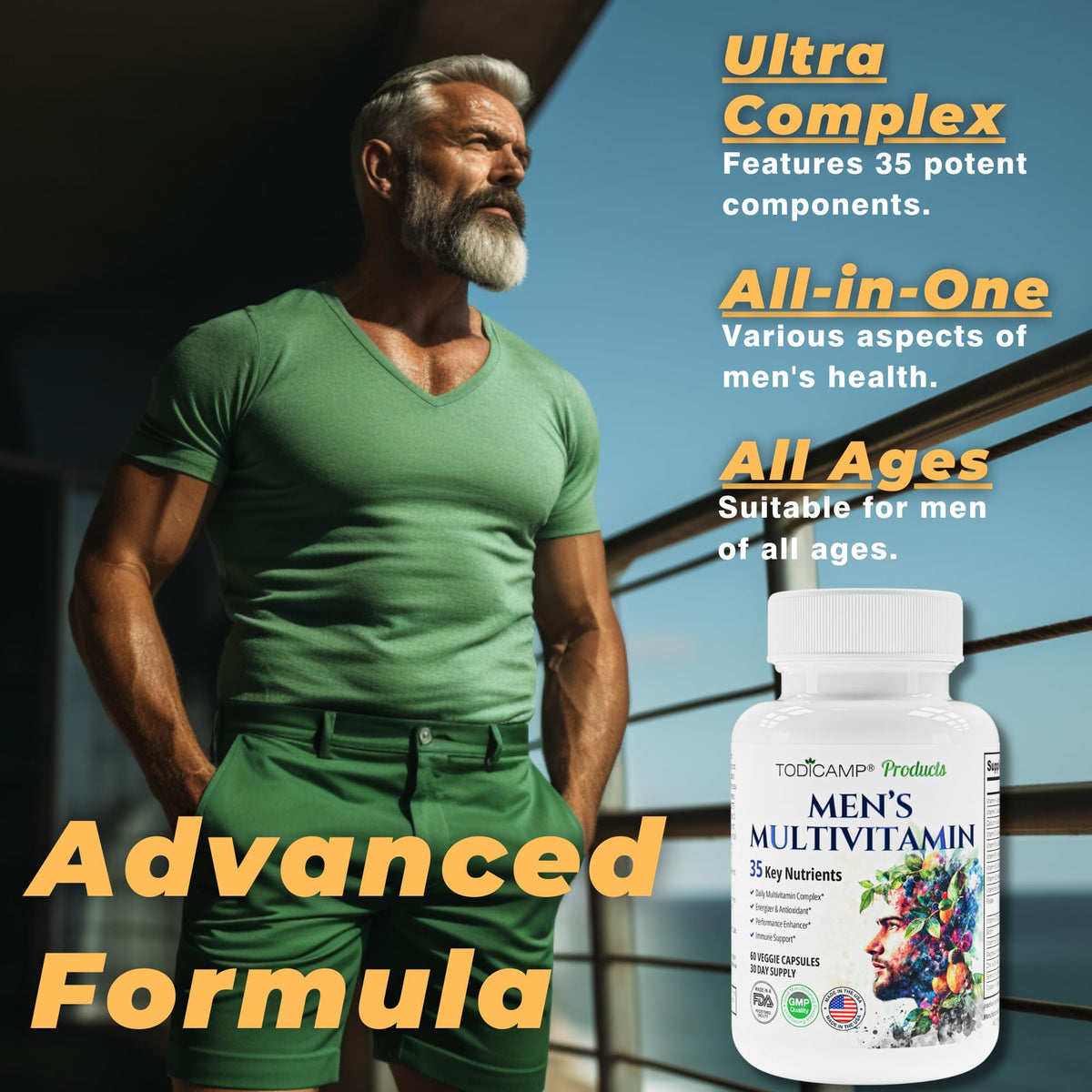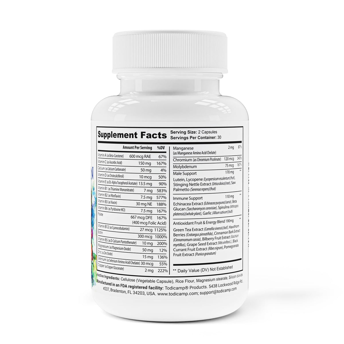 TODICAMP Men's Multivitamin & Mineral Complex with Plant-Based Extracts - Multivitamin for Men Improves Overall Health, Antioxidant & Natural Body Support - 60 Capsules - 30 Day Supply