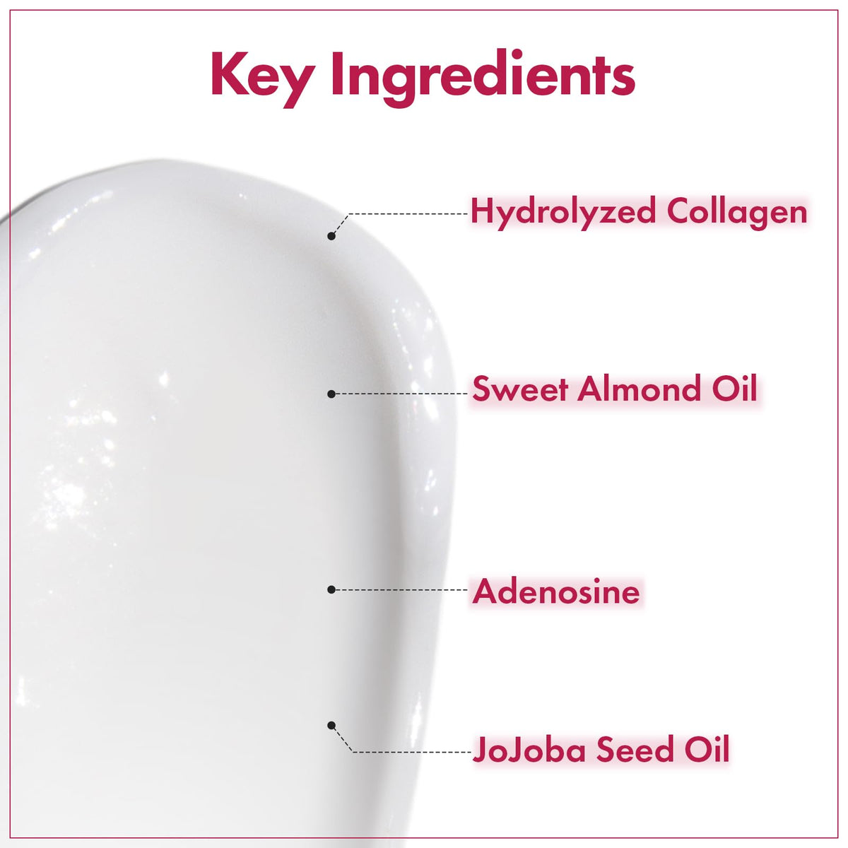 Special Ingredients :: Collagen, Glycerin, Adenosine, Arginine, Centella Asiatica Extract, Sweet Almond Oil, Jojoba Seed Oil