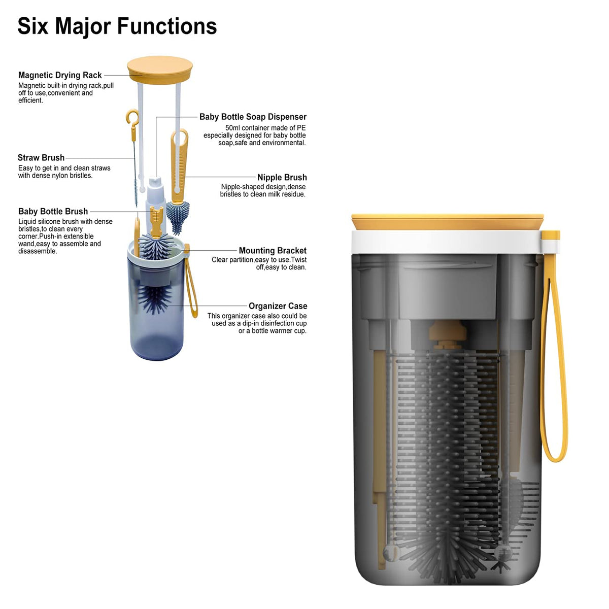 Keep your baby's feeding essentials clean and organized with the Travel Baby Bottle Drying Rack. This set includes a bottle cleaning brush, nipple brush, and straw brush in a vibrant Yellow color.