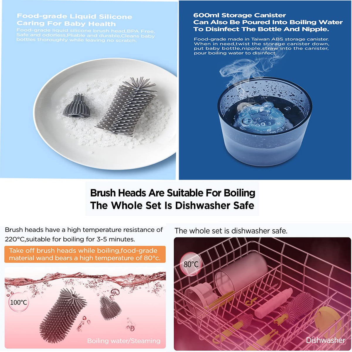 Travel Baby Bottle Drying Rack with Bottle Cleaning Brush Set and Bottle Dryer,Baby Bottle Brush,Nipple Brush and Straw Brush for Baby Bottle Cleaning,Yellow