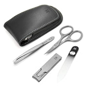 Travel manicure set - 4pc matte stainless steel in black leather case by GERManikure
