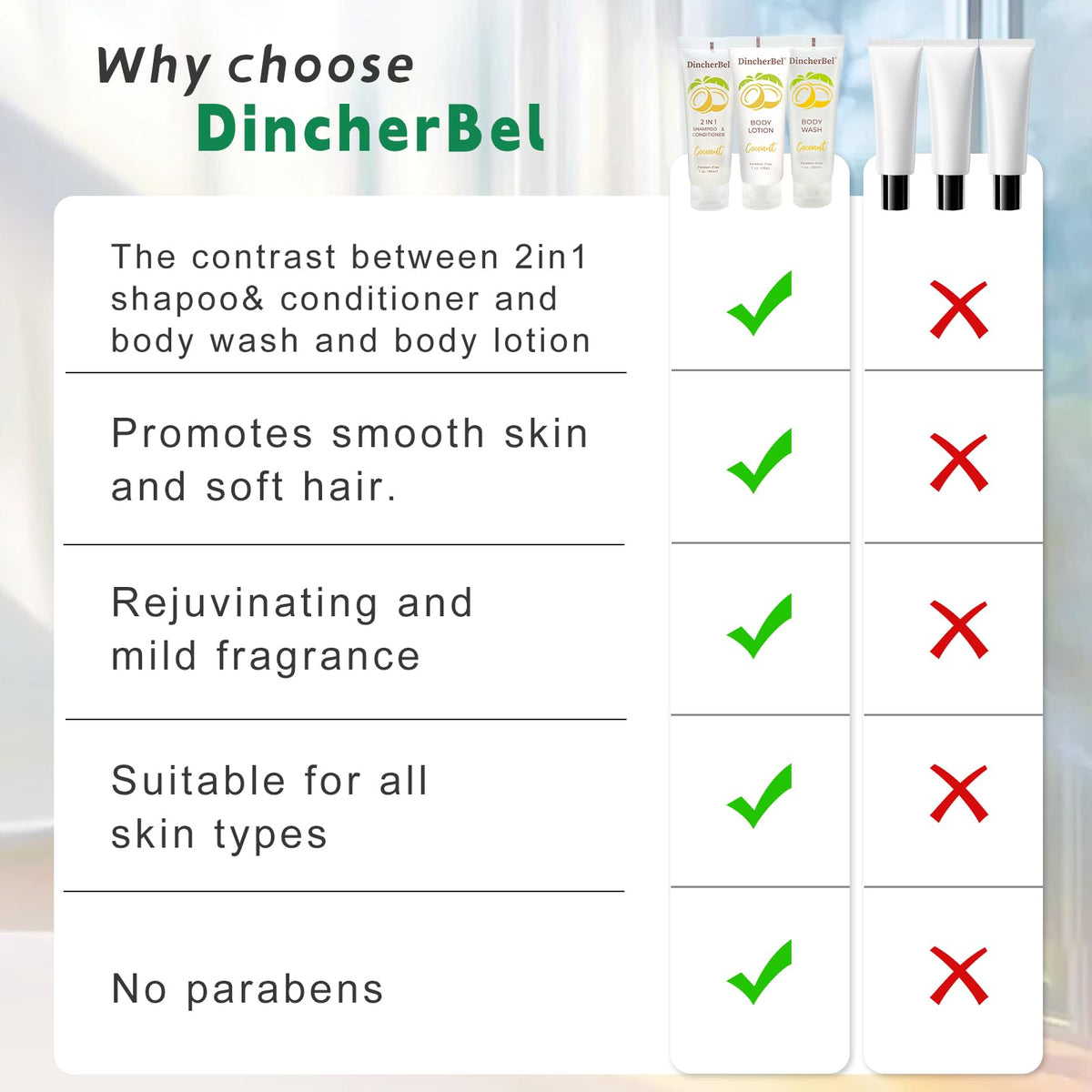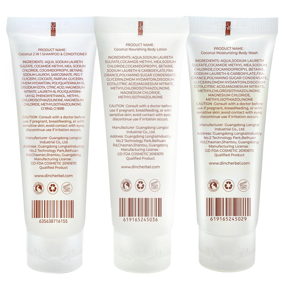 Travel Size Toiletries Kits offer a convenient solution for travelers looking for refreshing coconut-scented amenities. This 3-piece set includes shampoo & conditioner, body wash, and body lotion, all in a tropical coconut fragrance.