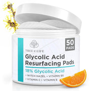 Tree of Life Beauty 18% Glycolic Acid Pads for Face (50 Pads) - Exfoliating Pad for Face with Witch Hazel, Vitamin C, Vitamin B5 and Vitamin E - Smooth Pore Pad Reduce Pigmentation and Fine Lines