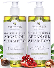 Nourish your sensitive scalp with Tree to Tub Fragrance Free Shampoo. This gentle, unscented formula hydrates with organic Argan Oil and Aloe Vera, providing natural care for both women and men.