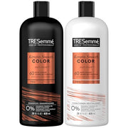 TRESemmé Keratin Smooth Color Shampoo and Conditioner are specially formulated to protect color-treated hair from fading and frizz. Each bottle contains 28 oz of nourishing hair care.