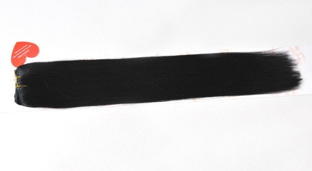 TRESSMATCH Remy Human Hair Clip in Extensions in Off Black (1b), 16”-18”. A full head volume set for thick to ends coverage.