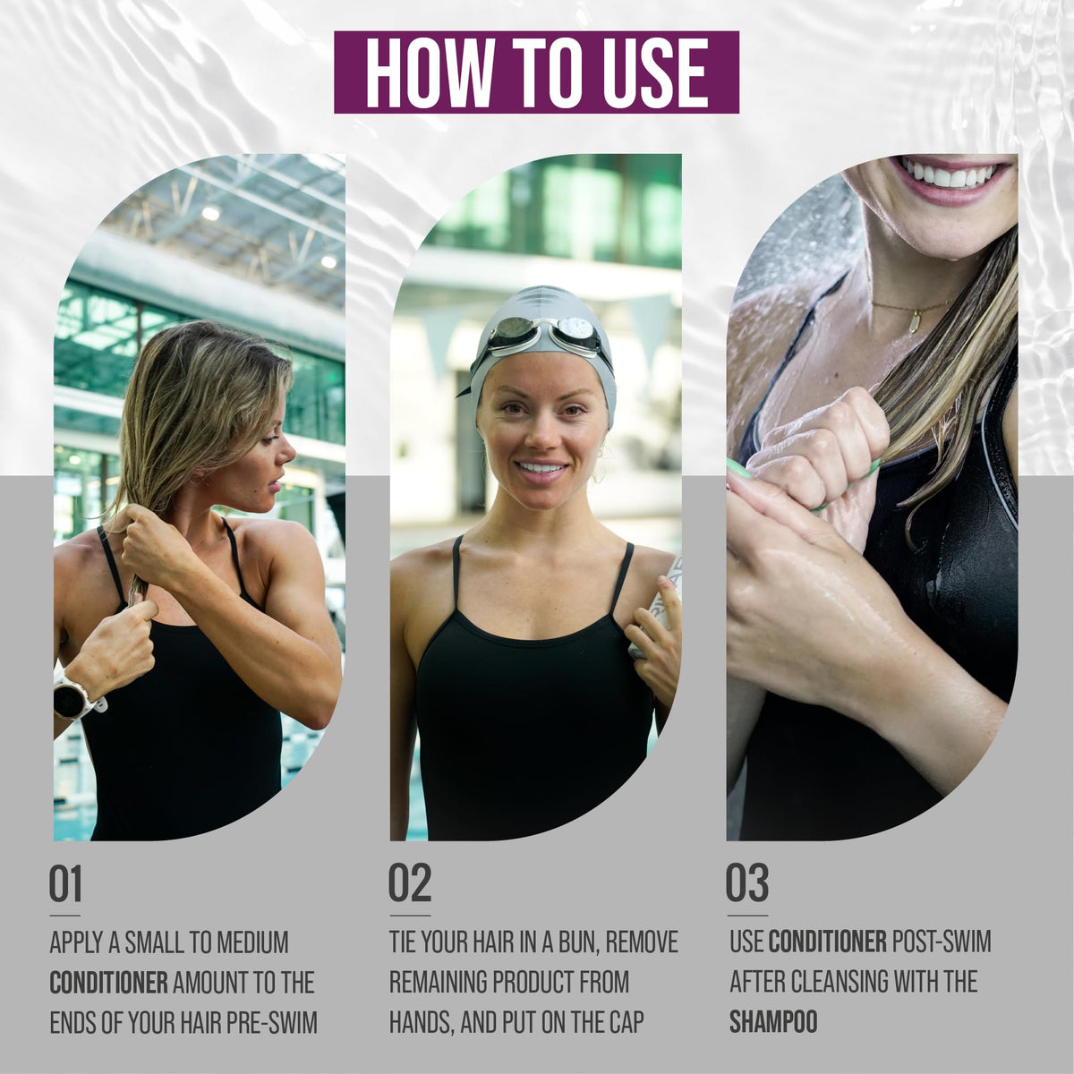 TRIHARD Swim Shampoo and Conditioner Combo | Chlorine Removal for Swimmers, Kids, and Adults - Pre Swim Hair Protection and Post Swim Hair Repair - Safe for Colored Hair
