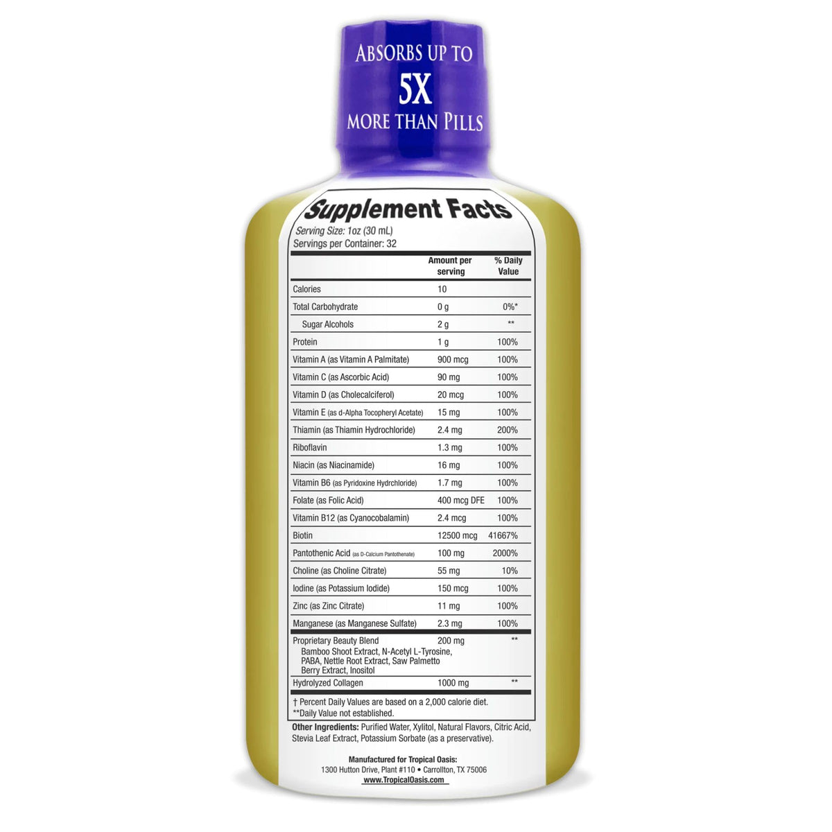 Tropical Oasis - Liquid Beauty | Supplement for Hair, Skin, & Nail Growth - Biotin + Hydrolyzed Collagen (32 Servings)
