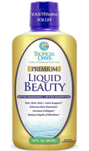 Promote hair, skin, and nail growth with Tropical Oasis Liquid Beauty. This supplement enriched with Biotin and Collagen supports beauty from within for radiant skin, strong nails, and luscious hair.