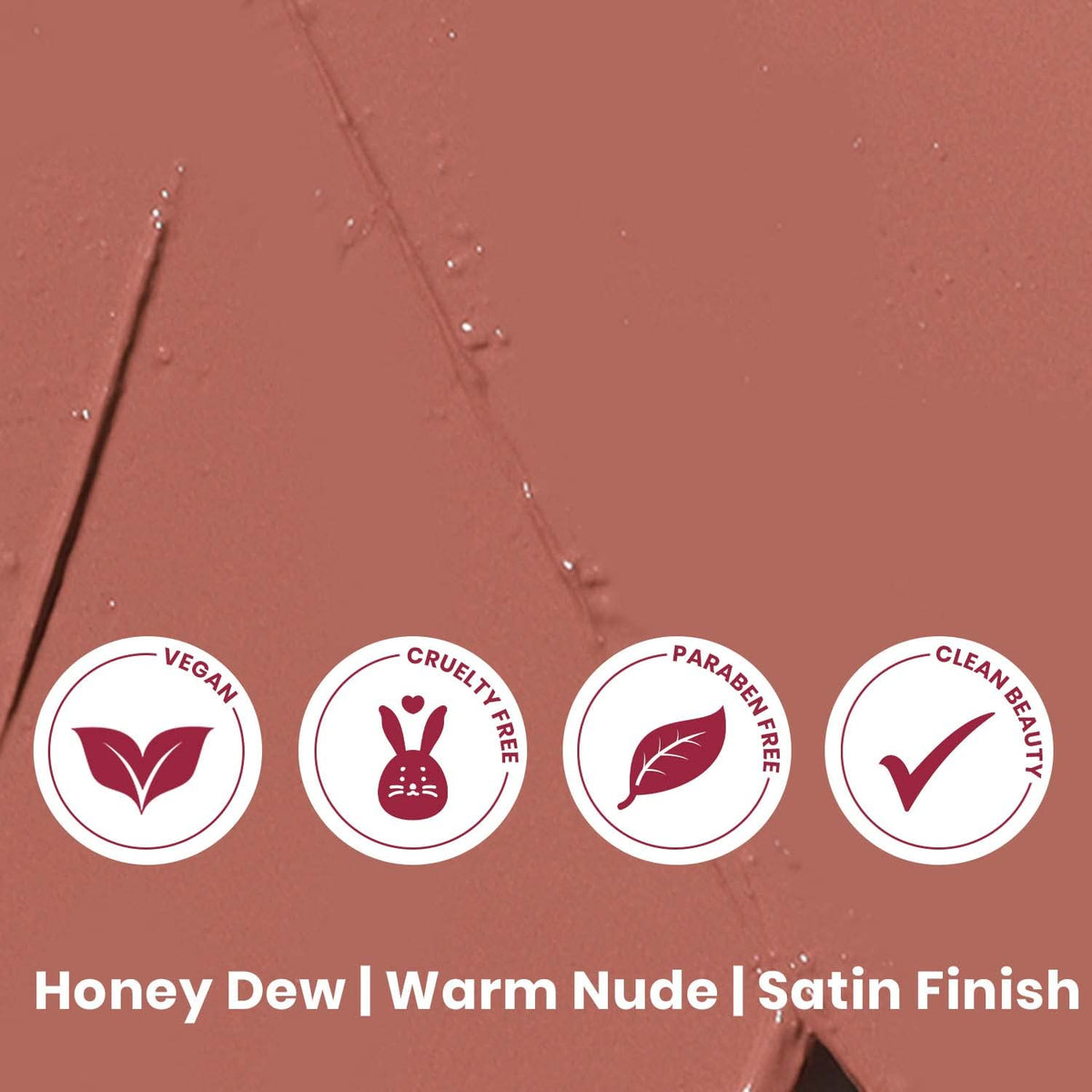 True + Luscious Super Moisture Lipstick in Honey Dew is a clean, vegan, and cruelty-free lipstick that provides lasting hydration for dry lips. With a warm nude shade and a satin finish, this lipstick keeps your lips moisturized and beautiful.