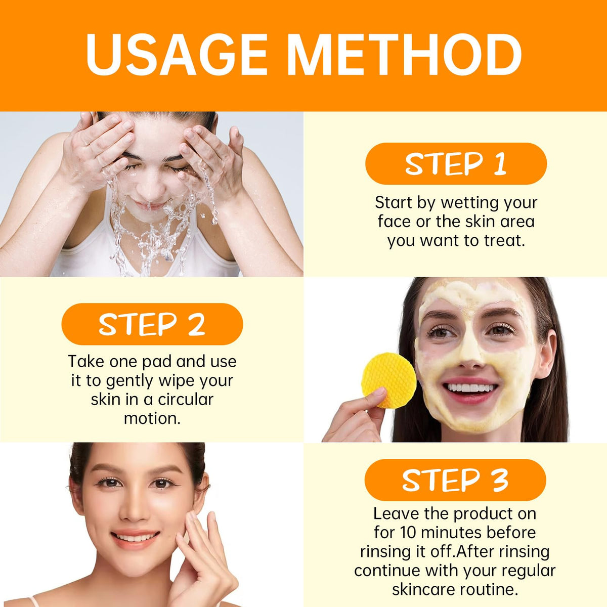 Wipe the turmeric cleansing pad across the face to clean and exfoliate, then discard the pad