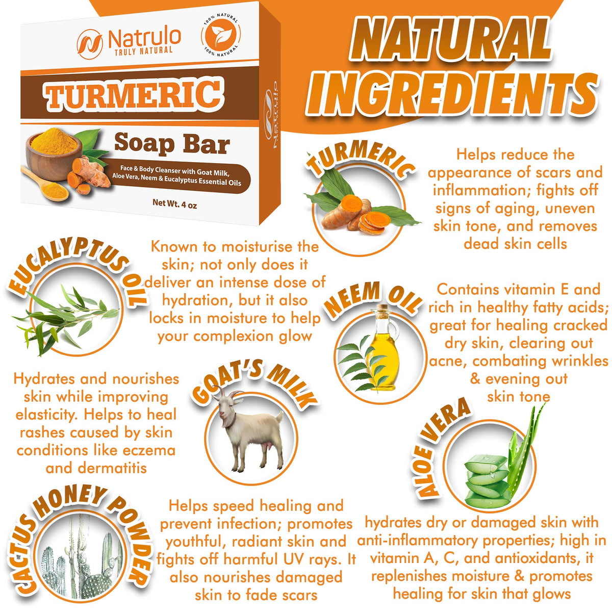 Turmeric Soap Bar for Face & Body - All Natural Turmeric Skin Soap - Turmeric Face Soap Reduces Acne, Fades Scars & Cleanses Skin - 4 Oz Turmeric Bar Soap for All Skin Types Made in USA