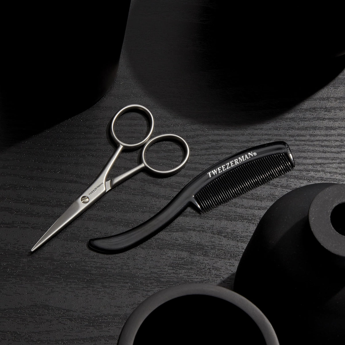 Style your mustache with precision using Tweezerman G.E.A.R. Moustache Scissors and Comb. This black set ensures your facial hair stays groomed and neat.