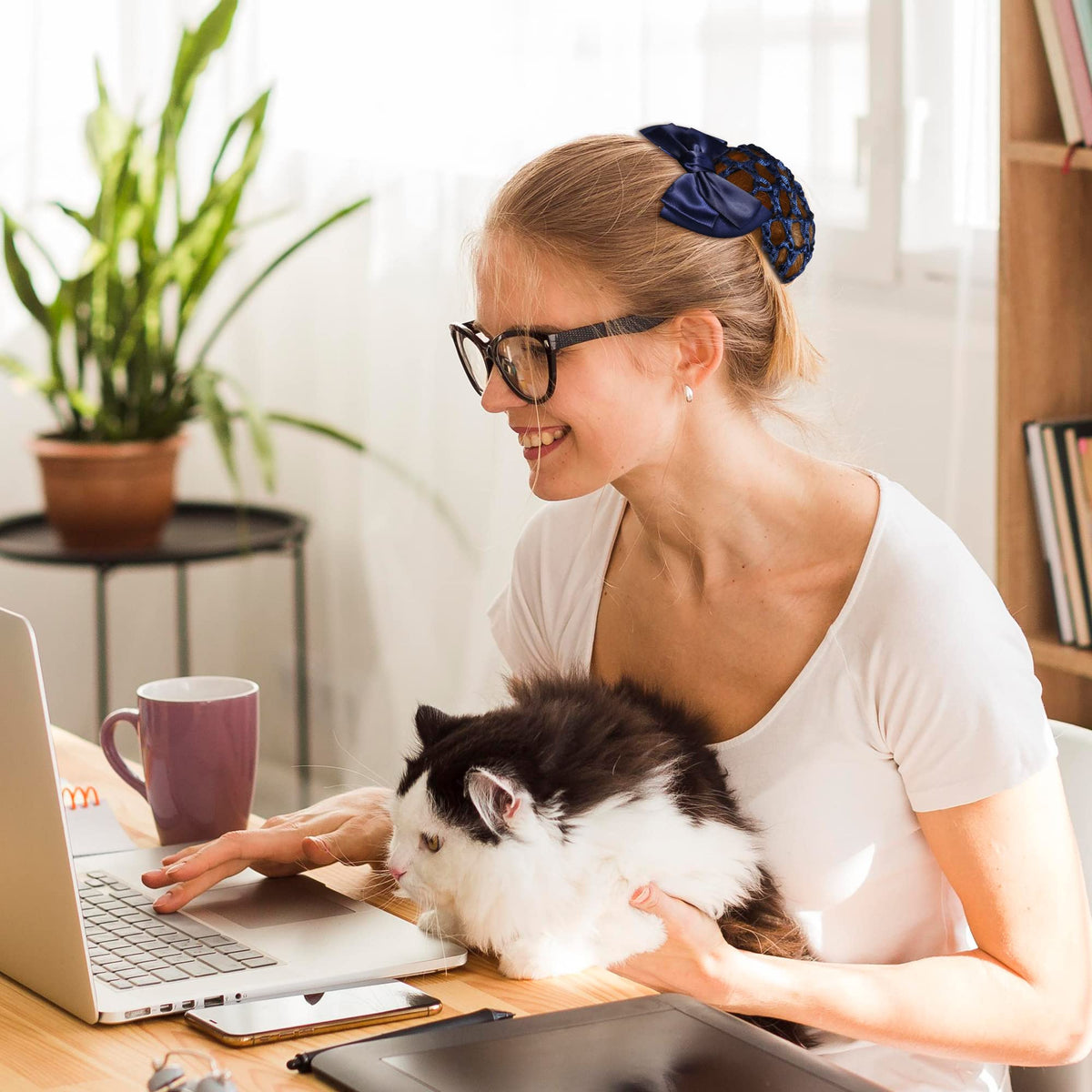 TXIN Hair Snood Net Bun Cover is a stylish and practical hair accessory for women. This 3-piece set in Black, Navy Blue, and Red colors features a bowknot decor and mesh design, perfect for work or casual wear.
