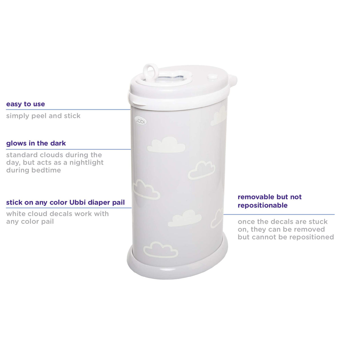 Ubbi Glow-in-The-Dark Cloud Peel and Stick Decal Stickers, Decorative Sticker for Diaper Pail or Baby Nursery
