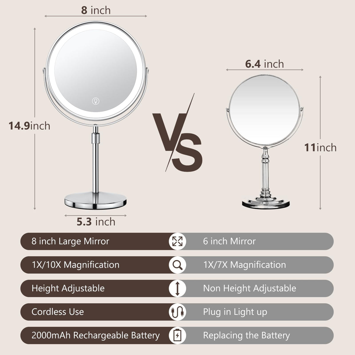Included Components :: 1x Lighted Makeup Mirror