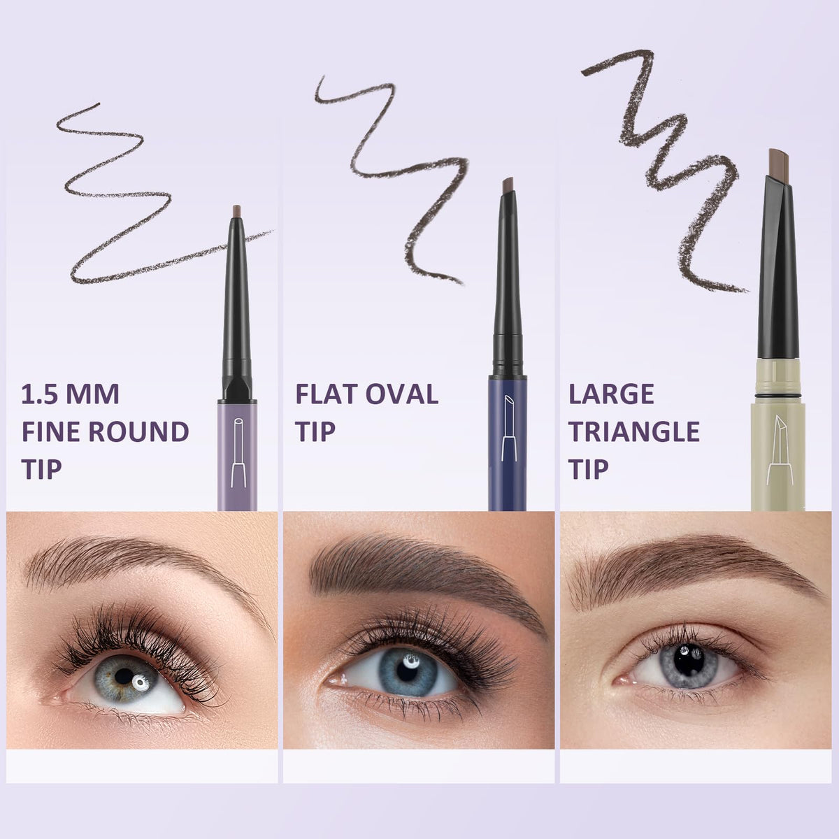 UCANBE 3 PCS Eyebrow Pencils for Women, Brow Pencil Included 3 Types of Tips - Shapes, Defines, Fills, Dual-Sided, Long-Lasting Brow Makeup, Brown