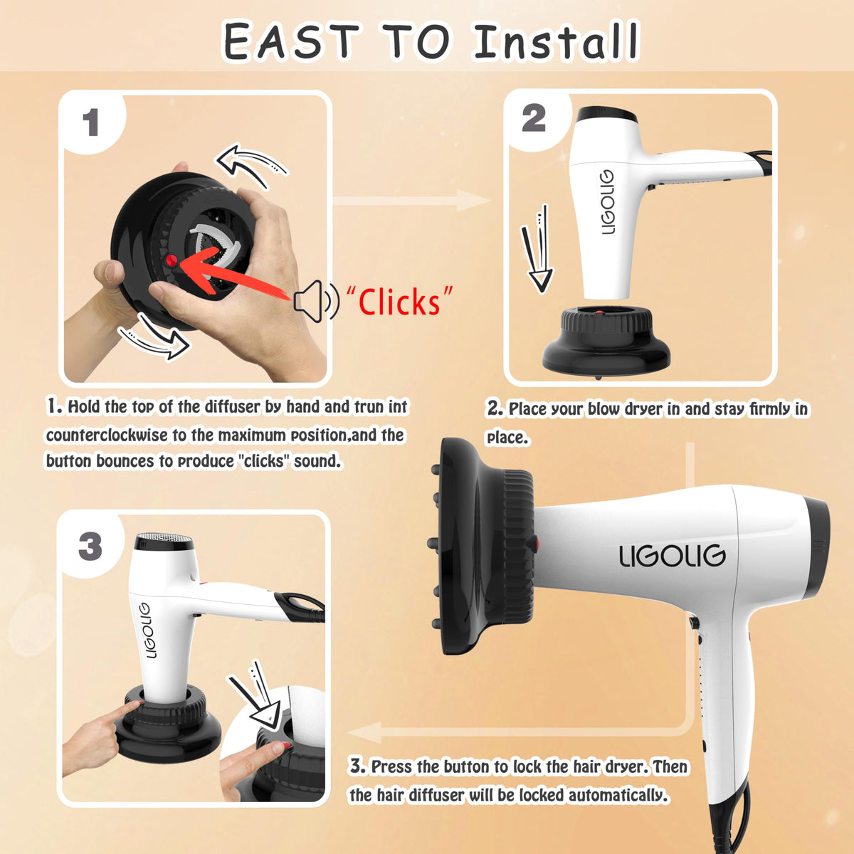Enhance your natural waves with the Universal Portable Blow Dryer Diffuser. This innovative diffuser is designed for curly and wavy hair, providing a gentle and effective way to dry and style your locks. The black & purple design adds a touch of sophistication to your hair care routine.