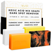 Experience the transformative power of VALITIC Assorted Kojic Acid Soap Bars, your ultimate solution for achieving flawless skin. This 4-pack assortment targets dark spots and hyperpigmentation with potent Kojic Acid and Turmeric, promoting a clearer, more even skin tone. Each bar - Turmeric , Snail, Charcoal, and Brightening Lemon - offers unique benefits, enriched with Hyaluronic Acid, Vitamin E, and Shea Butter for deep hydration and nourishment. Crafted with an Original Japanese Complex, these soaps deliver luxurious cleansing while enhancing your natural radiance. Elevate your skincare routine with VALITIC for visibly brighter and smoother skin.