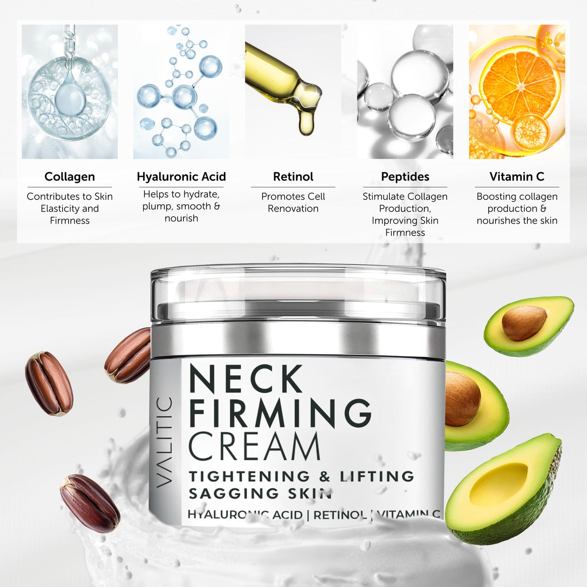 VALITIC Neck Cream for Tightening and Firming - Hyaluronic Acid, Retinol, and Vitamin C - Anti Aging Tightening & Lifting Sagging Skin Day and Night Cream