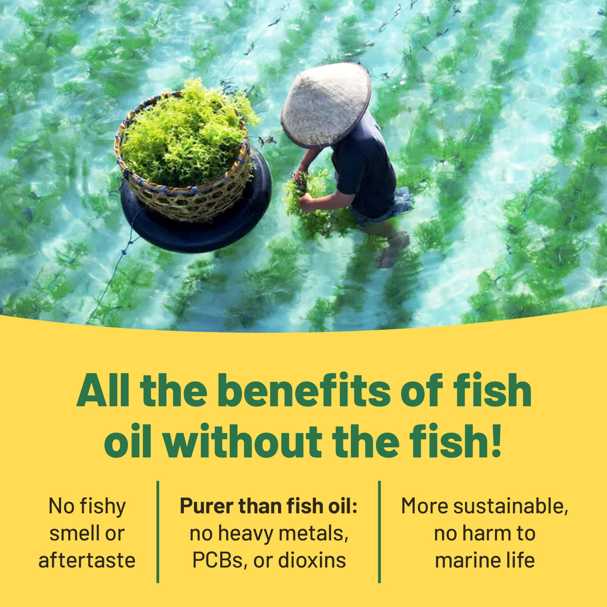 Vegan Vitality Vegan Omega 3 Supplement - 60 Plant Based Algae Oil Soft Gels Essential Fatty Acids with Vegan DHA for Joint, Heart & Immune Support Without EPA