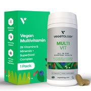 Optimize your metabolic and brain function with VEGETOLOGY MultiVit Vegan Multivitamin Supplement. This comprehensive multivitamin contains 26 essential vitamins and minerals suitable for women, men, and children.