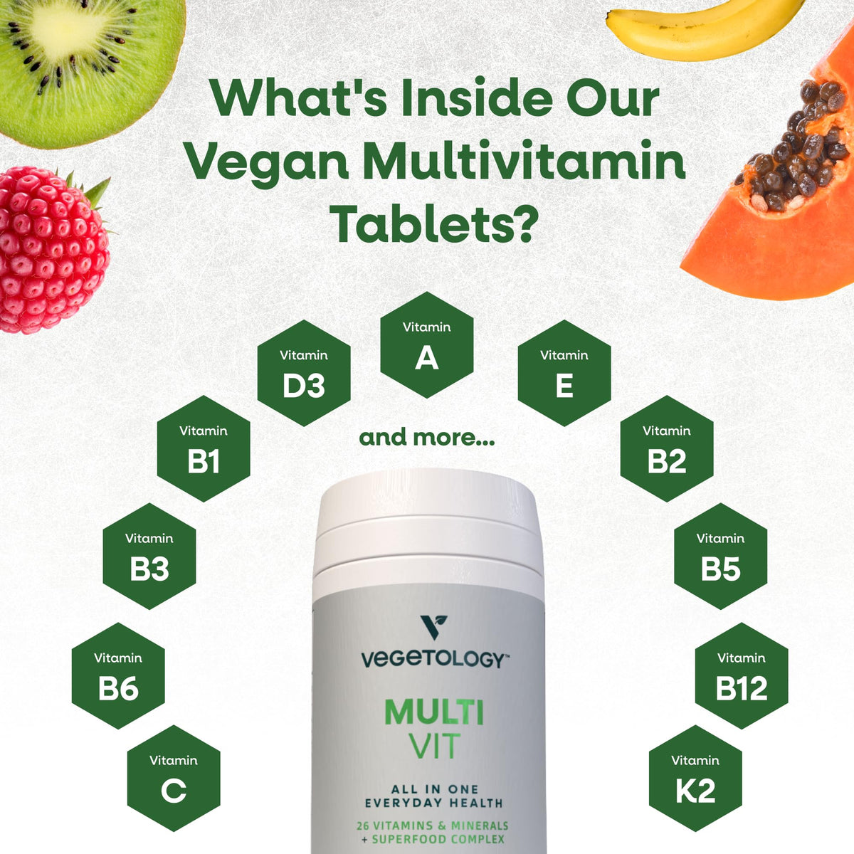 VEGETOLOGY MultiVit Vegan Multivitamin Supplement, 26 Vitamin & Minerals – Vitamin Supplements for Metabolic, Brain Function & Immune Support – Multivitamin for Women, Men & Children