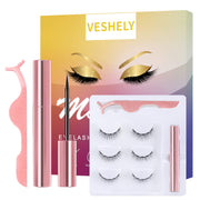 Experience the convenience of VESHELY Natural Magnetic Eyelashes with Eyeliner. This 3-pair set of natural look false lashes offers a hassle-free application without the need for glue.