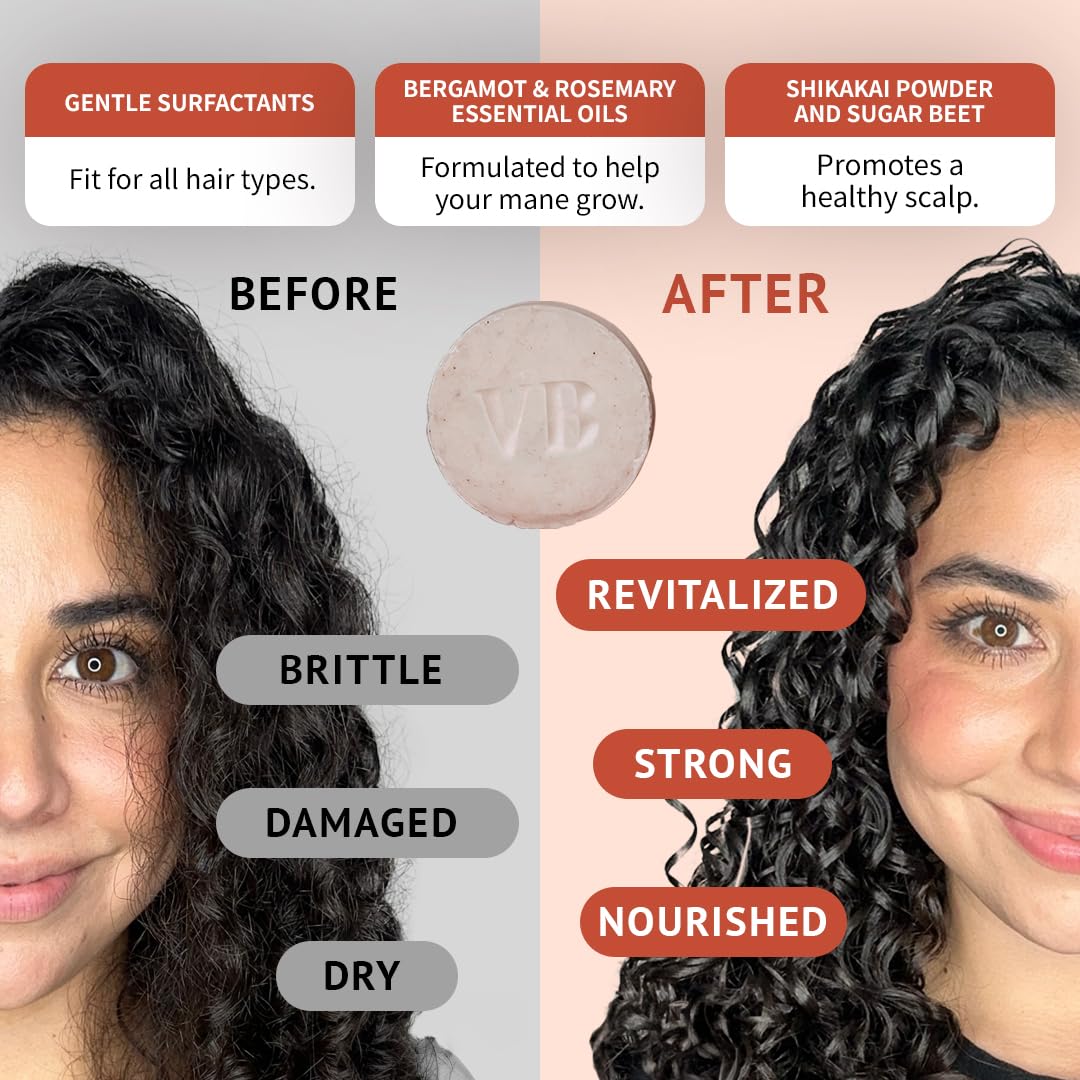 VIDA BARS Growth Solid Shampoo Bar for Curly, Thinning Hair | Natural, Color Safe, Moisturizing Vegan Handmade in the USA (Bergamot & Rosemary Scent)