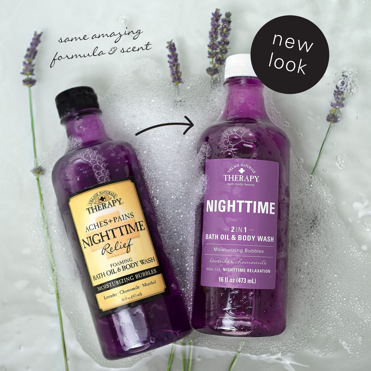 The Village Naturals Therapy Foaming Bath Oil and Body Wash provides nighttime relief and relaxation. This pack of 2 offers a soothing and rejuvenating bathing experience after a long day.