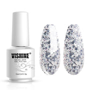 Vishine Long-Lasting Shiny Color Soak Off UV LED Manicure Lacquer Gel Nail Polish (1853-Glitter Silver)
