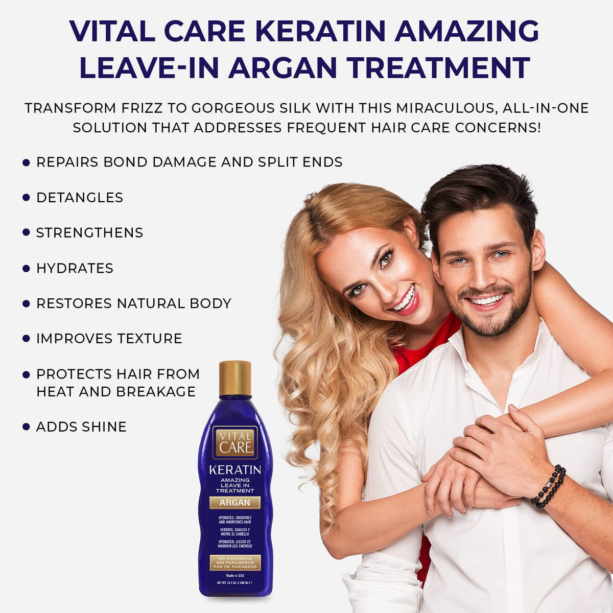 Vital Care Keratin Amazing Leave-In Treatment Argan - Gentle Keratin Complex Hair Treatment is Non-Stripping for Daily Use, Hydrating & Repairing - Abyssinian, Avocado & Sunflower Seed Oil