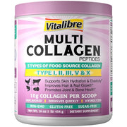 Boost your collagen intake with Vitalibre Multi Collagen Peptides Powder. This hydrolyzed collagen protein blend is perfect for enhancing skin, hair, and nail health, providing essential nutrients for a radiant appearance.