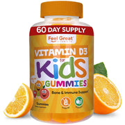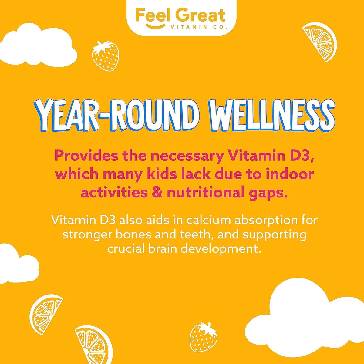 Vitamin D3 1000IU Gummy Vitamins for Kids (60 Day Supply) by Feel Great Vitamin Co | 60 Gummies | Delicious Plant Based Gummies | Supports Healthy Bones, Teeth, Mood, Immune System*
