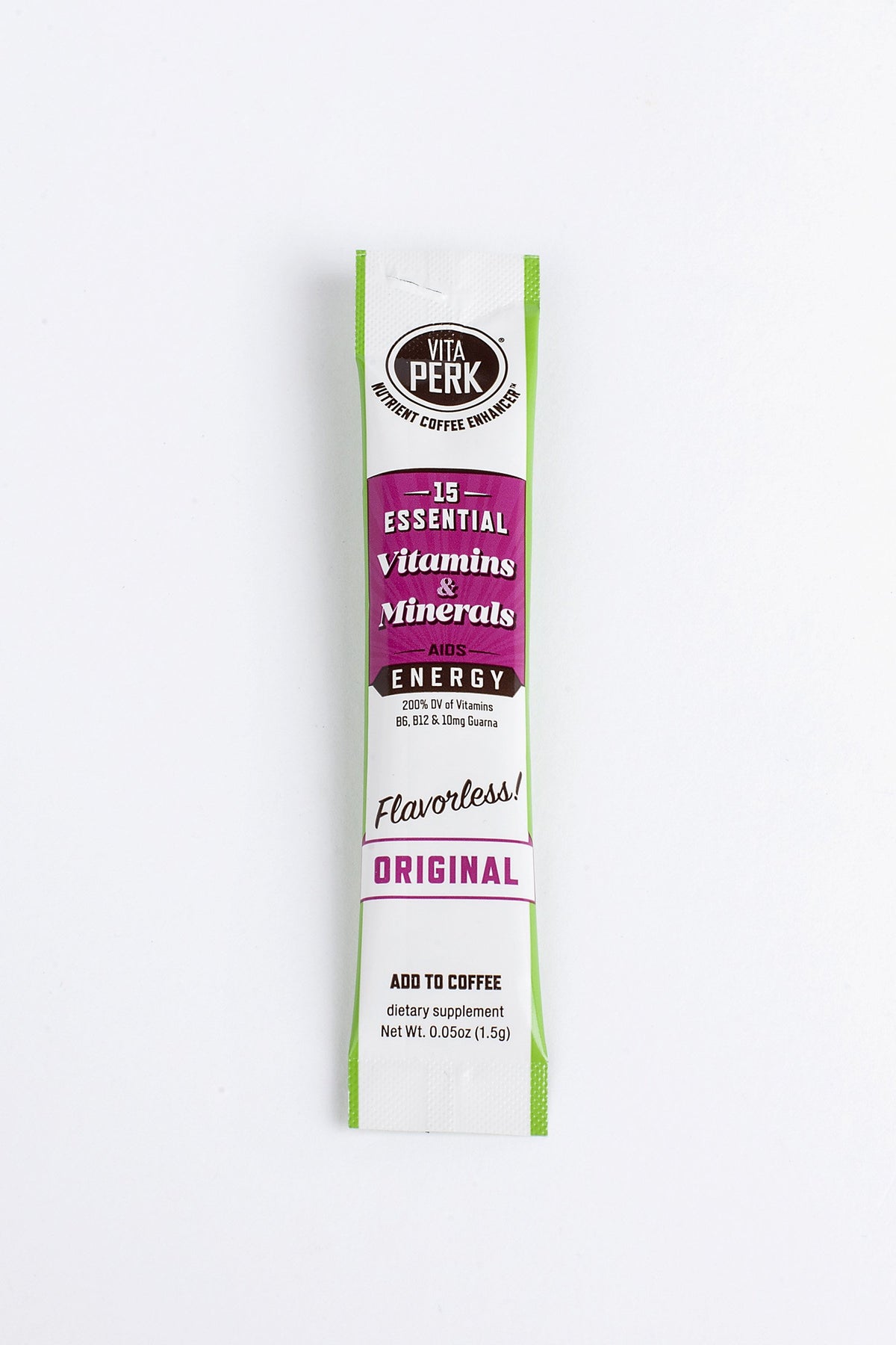 VitaPerk Energy Original is a flavorless energy booster with 15 vitamins and minerals in 30 packs to add healthy energy to your coffee.