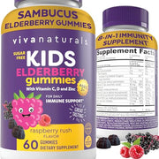 Viva Naturals 8in1 Elderberry Gummies for Kids with Vitamin C, D and Zinc - 60 Sugar Free Kids Immune Support Black Elderberry Gummies - Elderberry Vitamin C and Zinc Immune Support Supplement