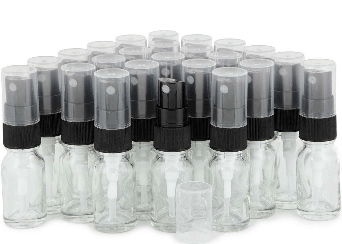 Vivaplex, 24, Clear, 10 ml (1/3 oz) Glass Bottles, with Black Fine Mist Sprayer's