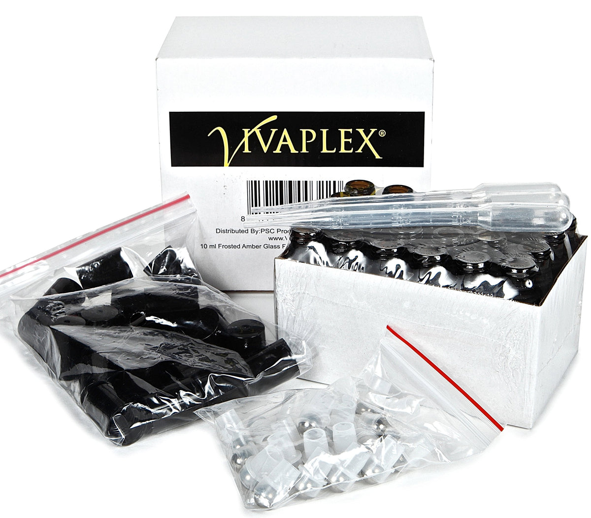 Vivaplex, 24, Frosted Amber, 10 ml Glass Roll-on Bottles with Stainless Steel Roller Balls. 3 - 3 ml Droppers included