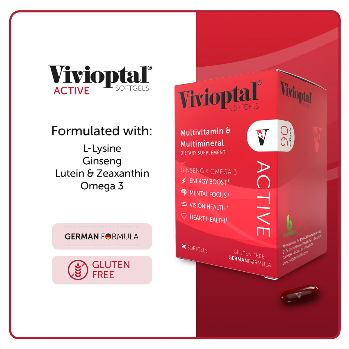 Vivioptal Active, 90 Softgels, Ginseng & Omega 3, Multivitamin & Multimineral, Gluten Free, German Formula